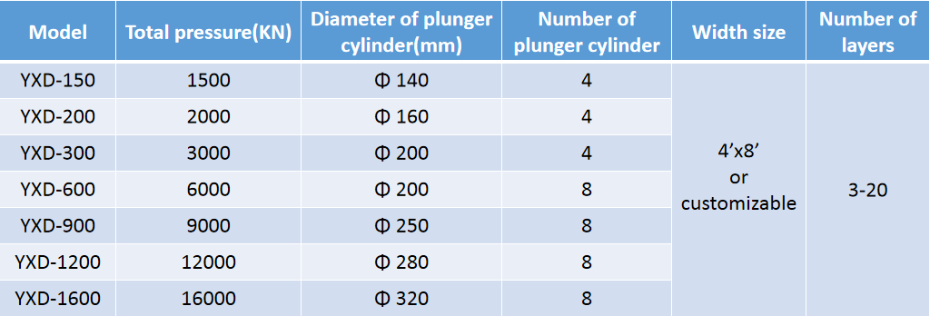 La máquina de prensado en caliente de madera contrachapada multicapa es adecuada para fabricar madera contrachapada de melamina y plantilla de construcción fenólica, MDF con melamina de alto brillo. Se puede utilizar para laminar todo tipo de material decorativo en un lado de MDF, tableros de partículas, madera contrachapada, tableros de bloques. También es adecuado para hacer madera contrachapada en bruto y secar tableros.